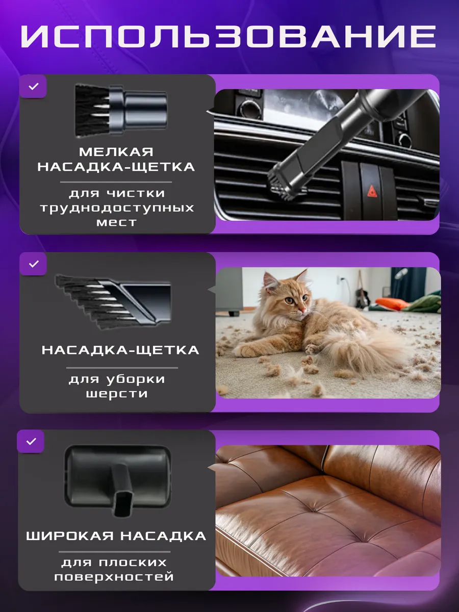 Этот беспроводной автомобильный пылесос обеспечивает мощную уборку салона без необходимости подключения к прикуривателю. С его помощью вы легко удалите пыль, крошки, шерсть животных и другой мусор с сидений, ковриков и труднодоступных мест. Компактный размер позволяет удобно хранить пылесос в багажнике или бардачке, а эргономичная форма делает чистку комфортной. Идеальное решение для поддержания чистоты в автомобиле между профессиональными мойками.